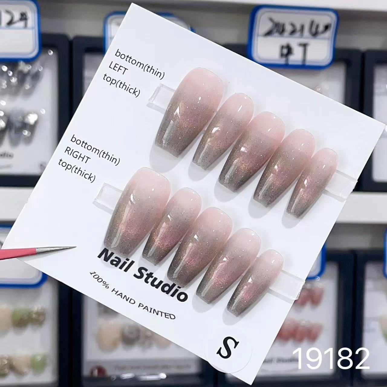 19182# medium TT pink cat's eye press on nails